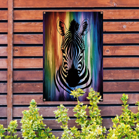 Zebra silhouet met kleurrijke regenboog achtergrond tuinposter