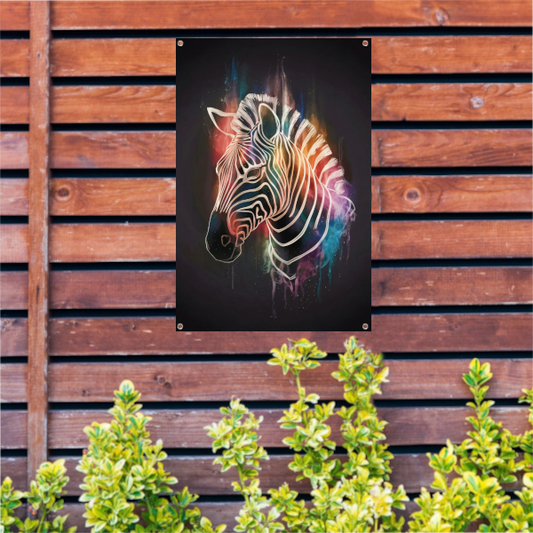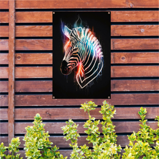 Fluorescerende zebra in neonkleuren kunstwerk tuinposter