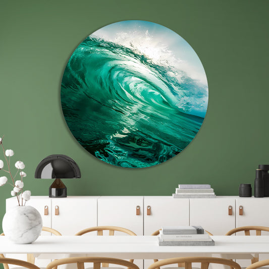 Dynamische oceaan golf met zonlicht aluminium muurcirkel