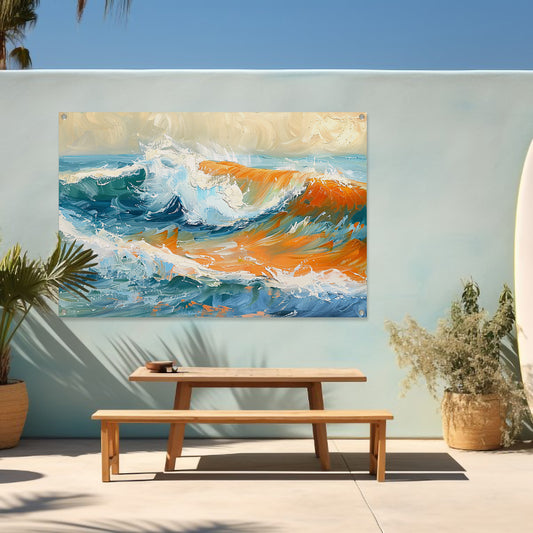 Dynamisch impressionistisch schilderij van een golf tuinposter