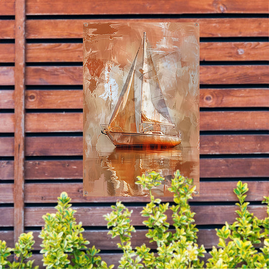 Abstracte zeilboot op reflecterend water tuinposter