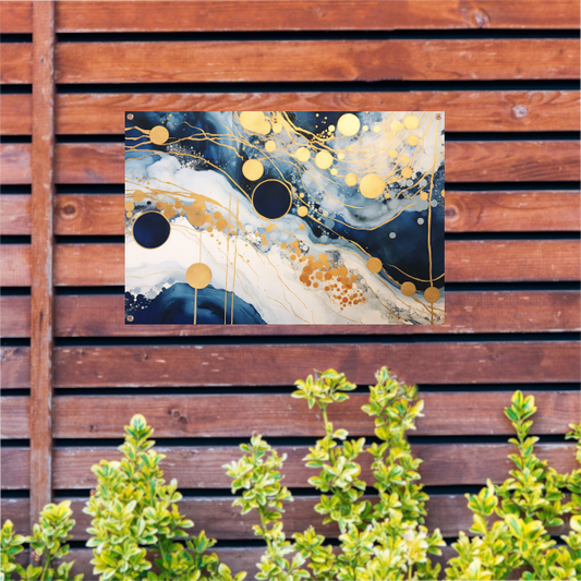 Blauwe diepten met gouden accenten tuinposter
