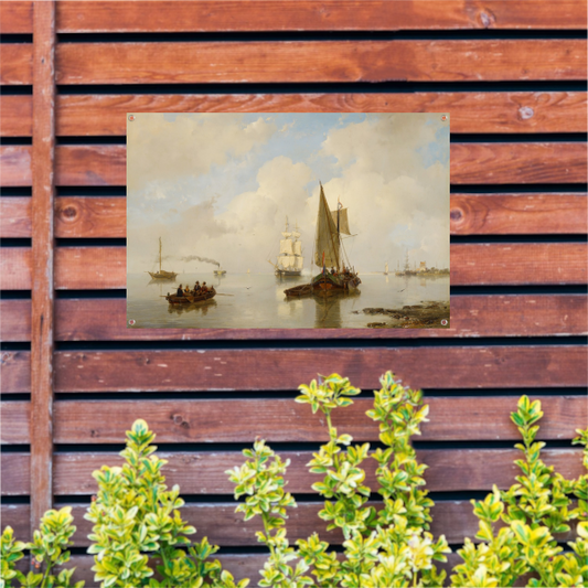 De Zeeuwsche stroomen bij stil weder, in t verschiet eene stoomboot - Andreas Schelfhout tuinposter