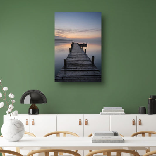 Houten Steiger Mistige Dageraad Stille Zee acrylglas