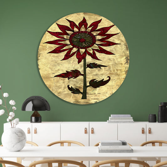 Gouden Zonnebloem op Dieprode Achtergrond aluminium muurcirkel