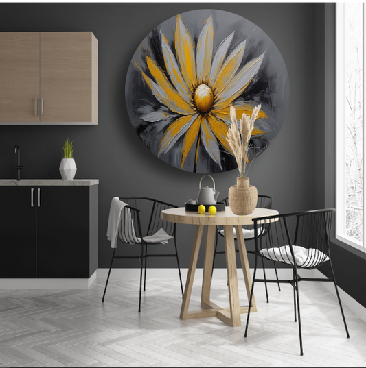 Vivid Yellow Flower Against Grey Backdrop aluminium muurcirkel