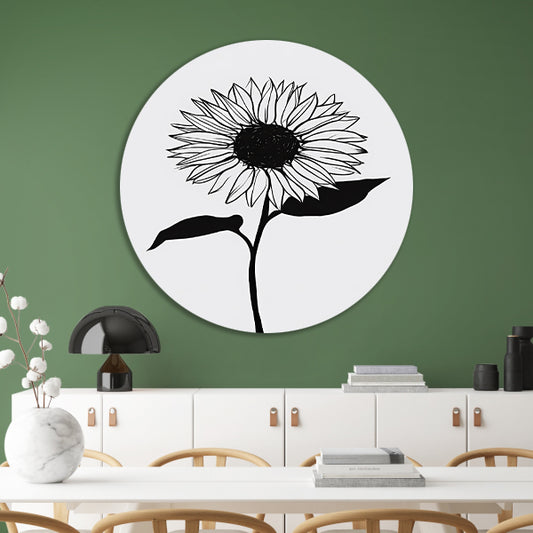 Minimalistische zwart-witte zonnebloem lijnkunst aluminium muurcirkel