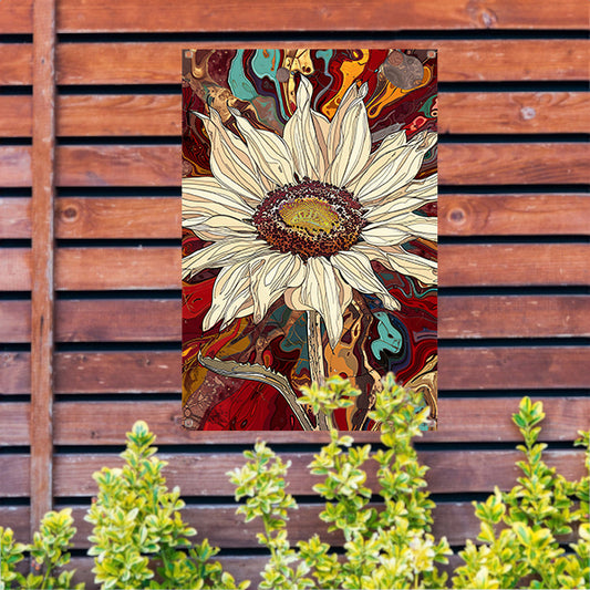 Kleurrijke zonnebloem met psychedelische achtergrond tuinposter