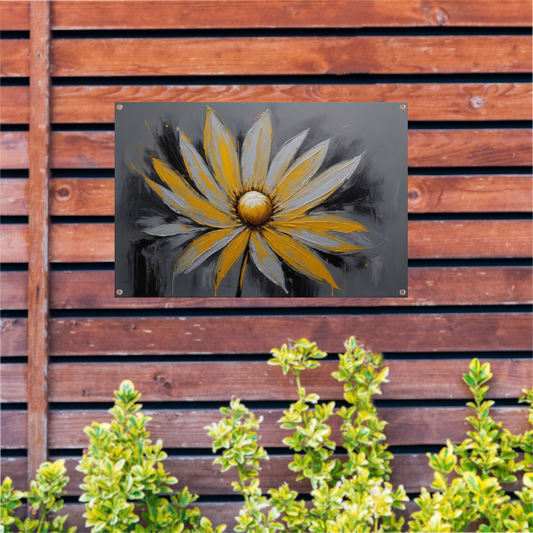 Vivid Yellow Flower Against Grey Backdrop tuinposter