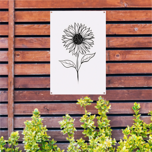 Minimalistische zwart-witte zonnebloem lijnkunst tuinposter