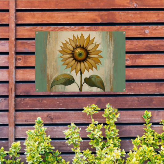 Elegante Gouden Zonnebloem op Groen tuinposter