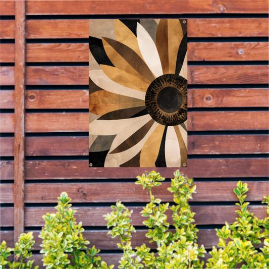 Sepia Zonnebloem Abstract Art Deco Design tuinposter