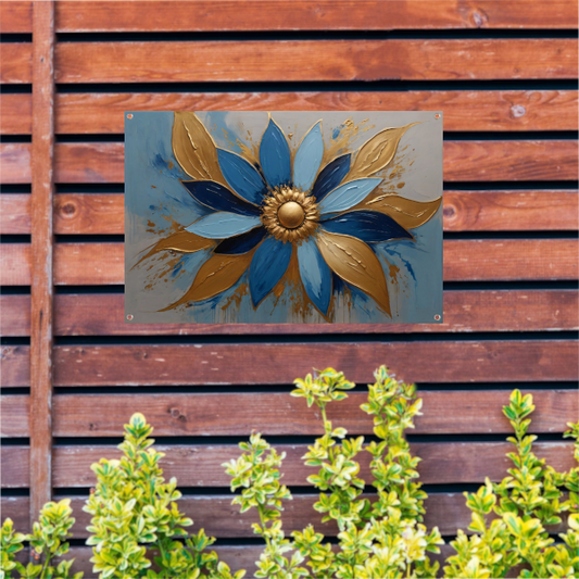 Abstracte Gouden Bloesem op Blauw tuinposter