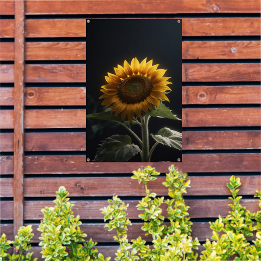 Solitaire zonnebloem in zachte verlichting tuinposter
