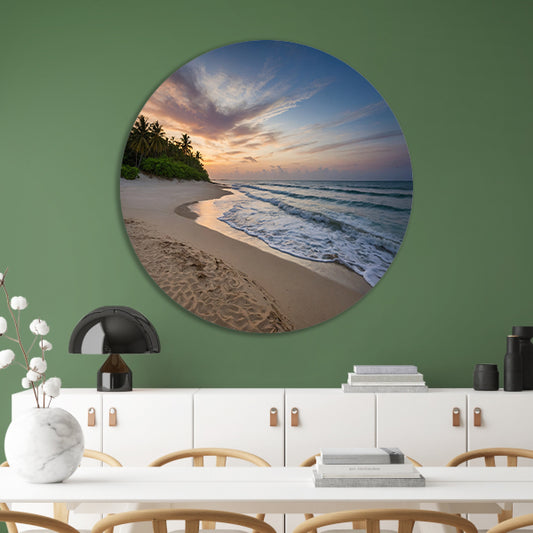 Prachtige zonsondergang aan rustig strand forex muurcirkel