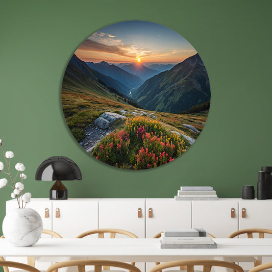 Prachtig berglandschap bij zonsondergang forex muurcirkel