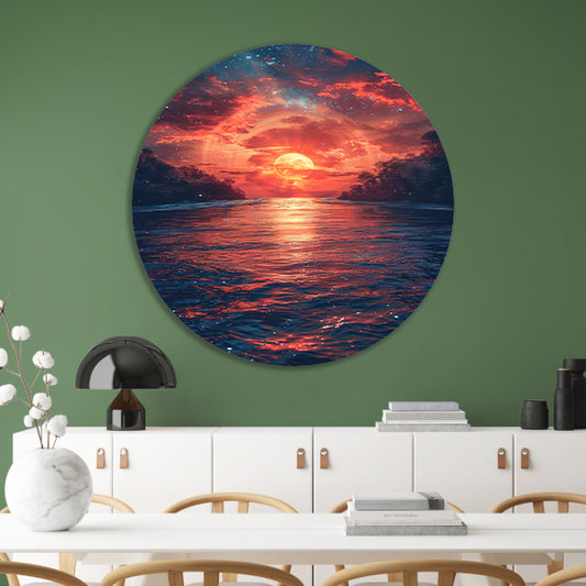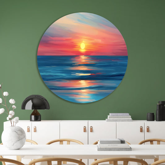 Minimalistische schildering van kleurrijke zonsondergang aluminium muurcirkel