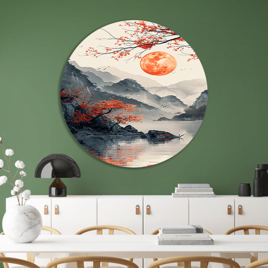Rode Maan boven Berglandschap met Meer forex muurcirkel