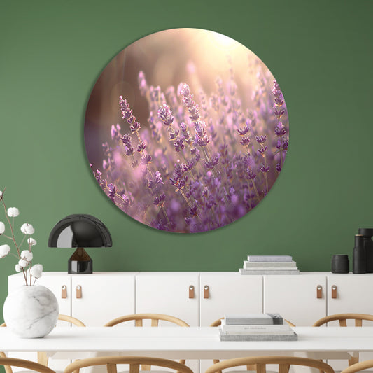 Betoverende lavendelvelden badend in zonlicht aluminium muurcirkel