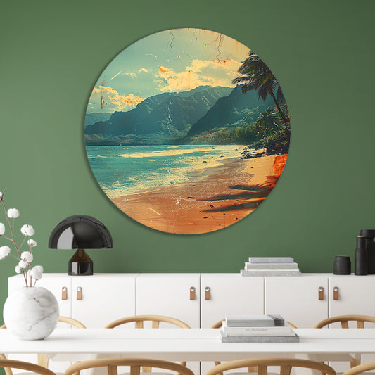 Vintage Strandtafereel met Palmbomen aluminium muurcirkel