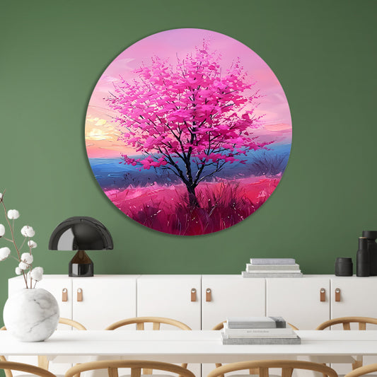 Kleurrijke Boom bij Expressieve Zonsondergang forex muurcirkel