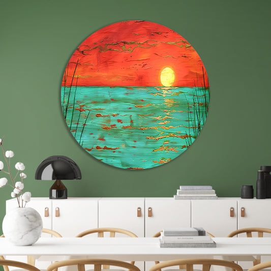Kleurrijke zonsondergang boven kalm water schilderij forex muurcirkel