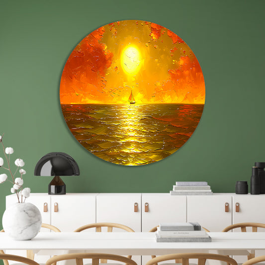 Prachtige zonsondergang met zeilboot op zee forex muurcirkel