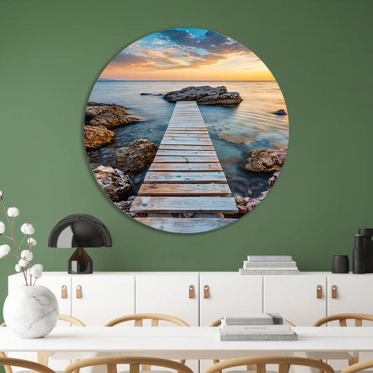 Houten Steiger met Zonsondergang aan de Kust forex muurcirkel