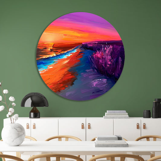 Minimalistische abstracte zonsondergang met kleurcontrast aluminium muurcirkel