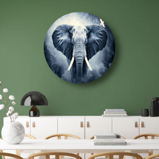 Olifant op een Brug tegen Zonsondergang aluminium muurcirkel