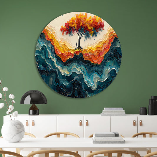 Golvende Abstractie in Warme Aardekleuren aluminium muurcirkel