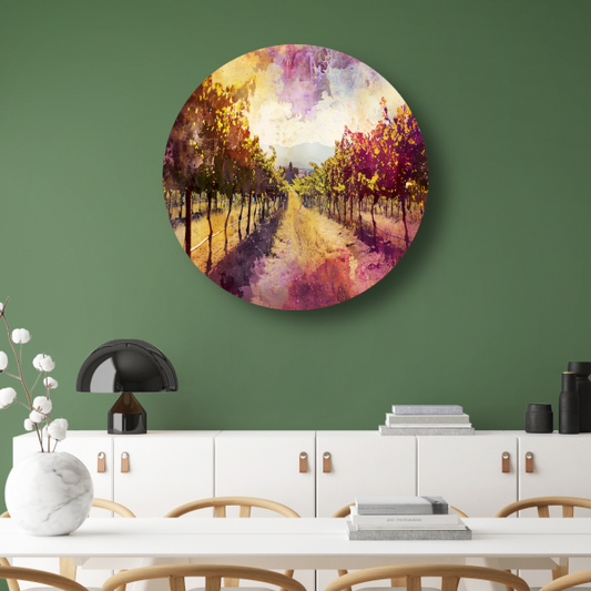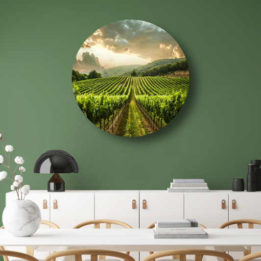 Wijngaard bij zonsondergang aluminium muurcirkel