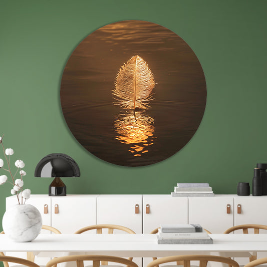 Gouden veer drijvend op rustig water bij zonsondergang forex muurcirkel