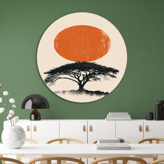 Minimalistische boom en zon in krachtige contrasten forex muurcirkel