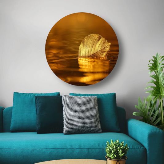 Gouden blad op kalme wateren bij zonsondergang forex muurcirkel