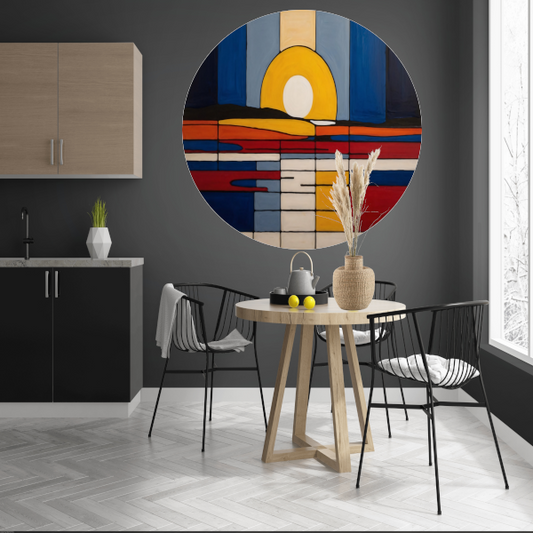 Abstracte Zonsondergang in Mondriaan Stijl forex muurcirkel