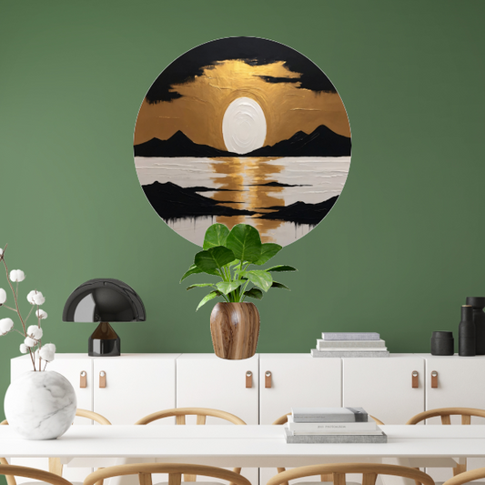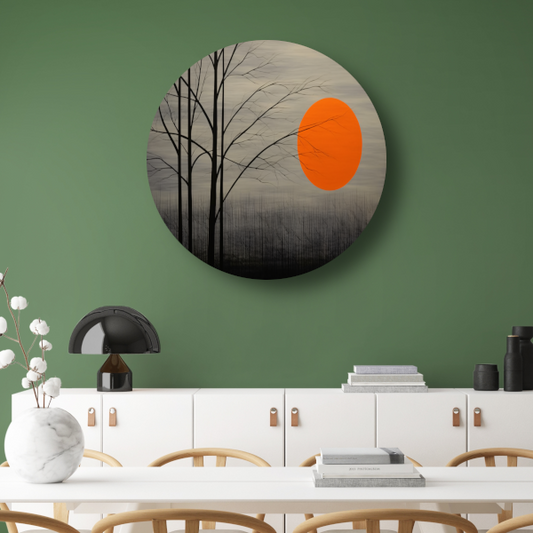 Abstracte Interpretatie van Zonsondergang en Bomen forex muurcirkel