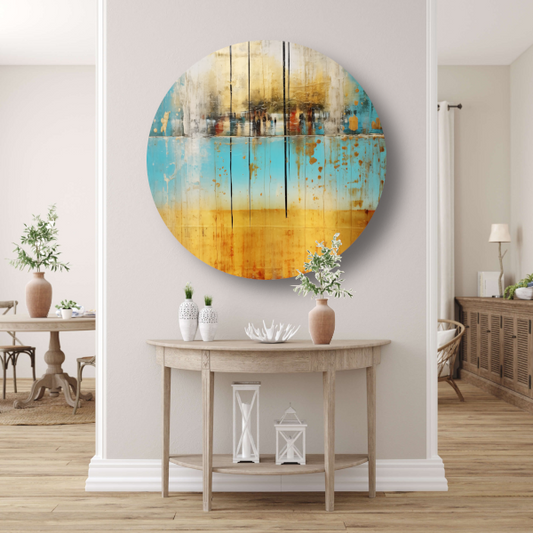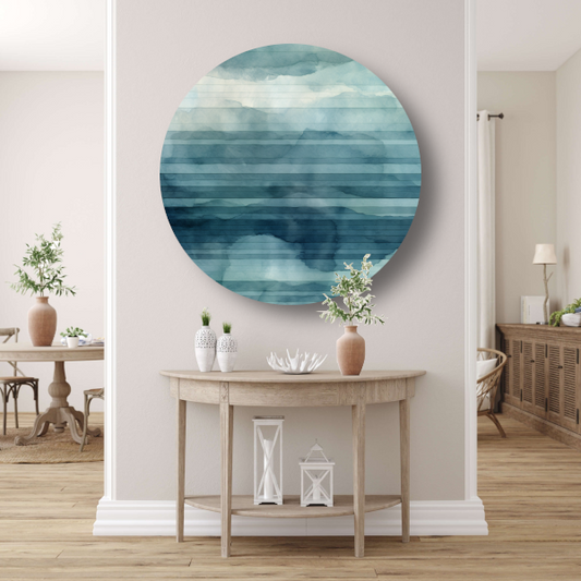 Blauw-geel landschap met horizontale lijnen forex muurcirkel