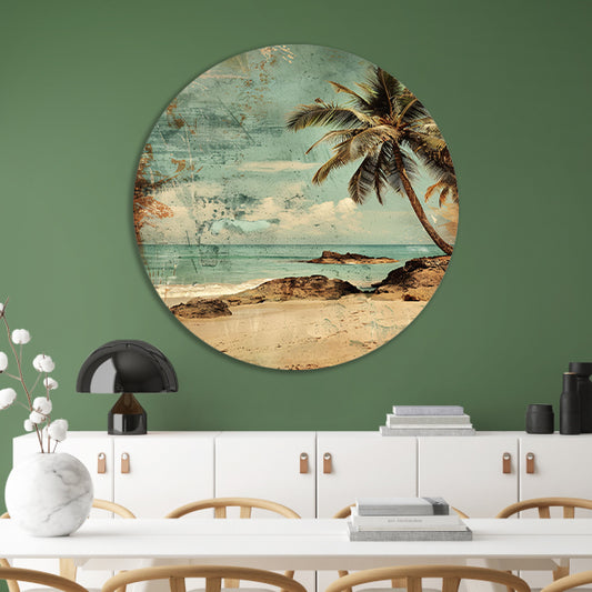Vergane Tropische Kust met Palmboom forex muurcirkel