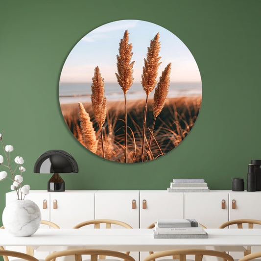 Gouden Grashalmen bij Zee in Zonsondergang forex muurcirkel