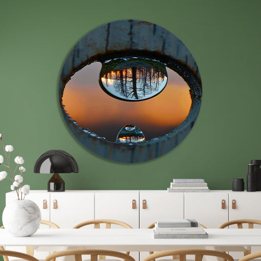 Reflectie van een Bos in een Dauwdruppel forex muurcirkel