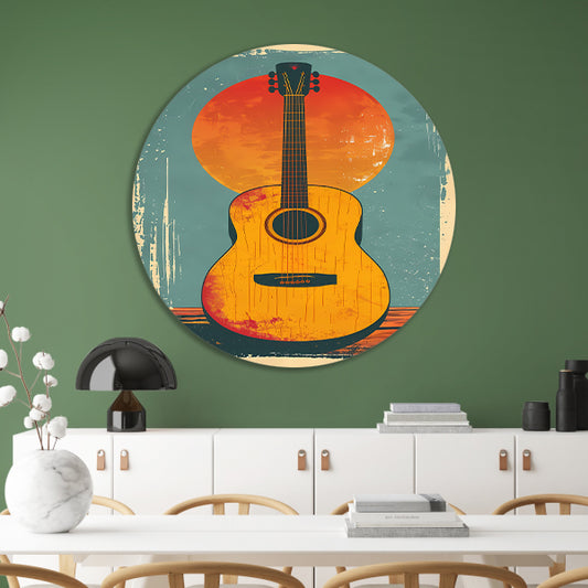 Vintage Gitaar in Ondergaande Zon forex muurcirkel