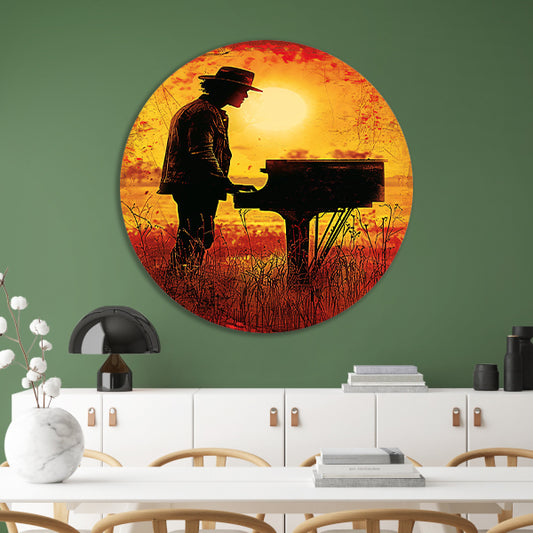 Silhouet pianist bij zonsondergang kunstwerk forex muurcirkel