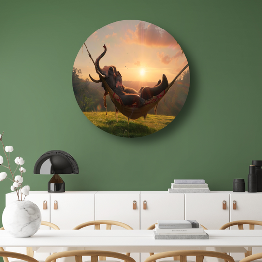 Olifant in een hangmat tijdens zonsondergang forex muurcirkel