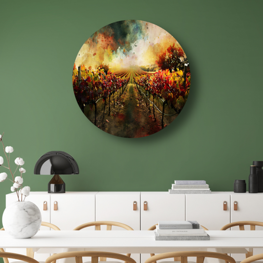 Herfstzon gloeit over golvende wijngaard forex muurcirkel