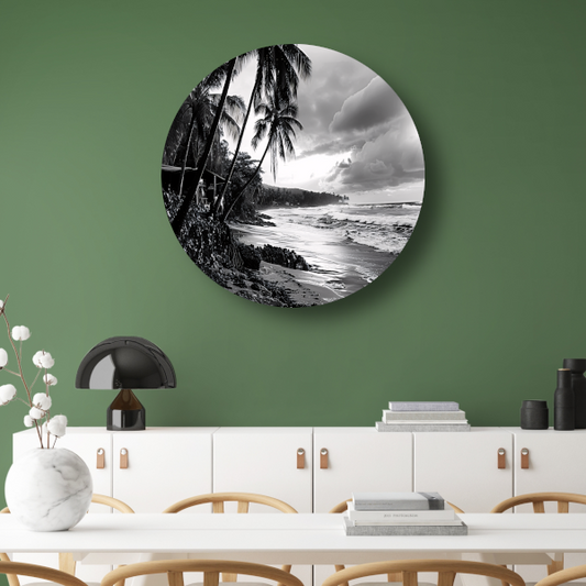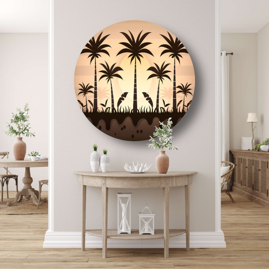 Sepia Palmbomen op een Zonovergoten Strand forex muurcirkel