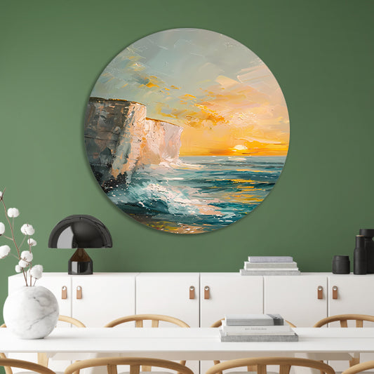Schilderij van golf bij kleurrijke zonsondergang forex muurcirkel