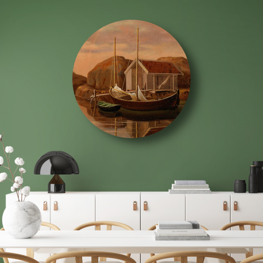 Kade en botenloods - Wilhelm von Wright aluminium muurcirkel