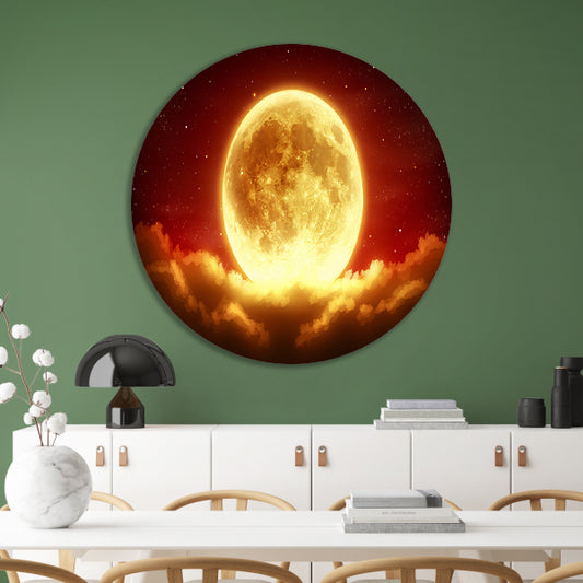 Abstract landschap met maan en sterren aluminium muurcirkel