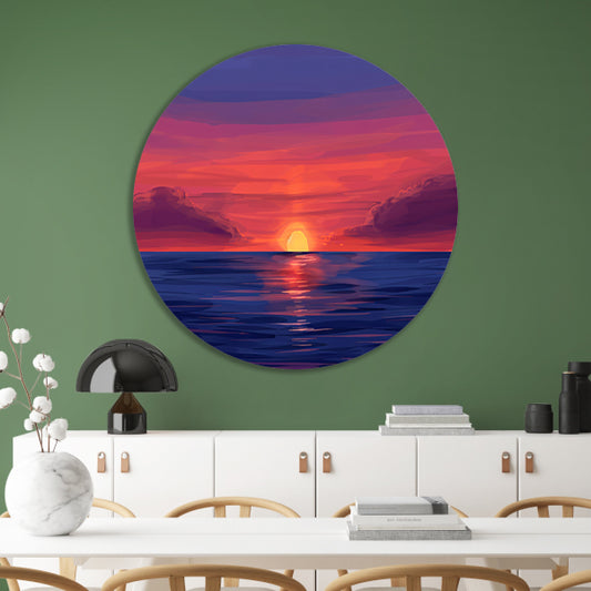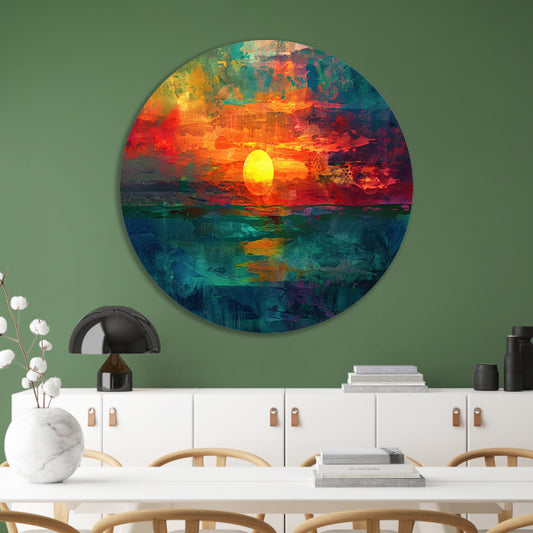 Kleurrijke digitale zonsondergang schilderij aluminium muurcirkel